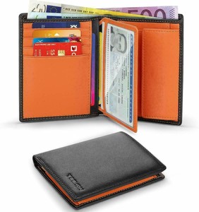Portefeuille Homme Cuir Veritable Tendance Porte Monnaie Blocage Nfc Noir Orange Ebay
