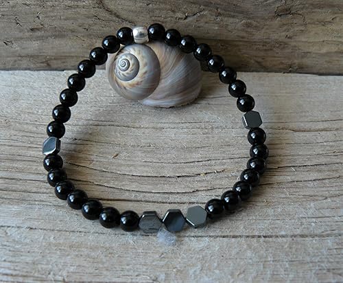 Bracelet Hematite Et Agate Noire Pierres Semi Precieuses Bracelet Hematite Pour Lui Bracelet Homme Bracelet Noir Amazon Fr Handmade
