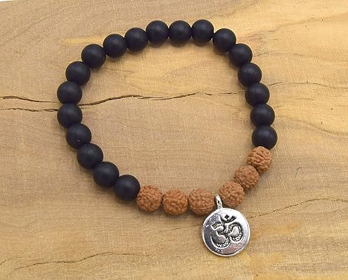 Bracelet Agate Noire Givree Pierres Precieuses Perles De 8mm Om Pendant Taille Unique Femme Homme Meditation Mala Amazon Fr Handmade