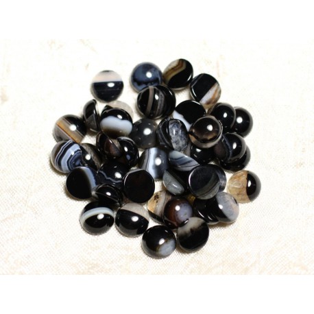 1pc Cabochon Demi Perle Pierre Agate Noire Et Blanche Rond 10mm Www 123perles Com