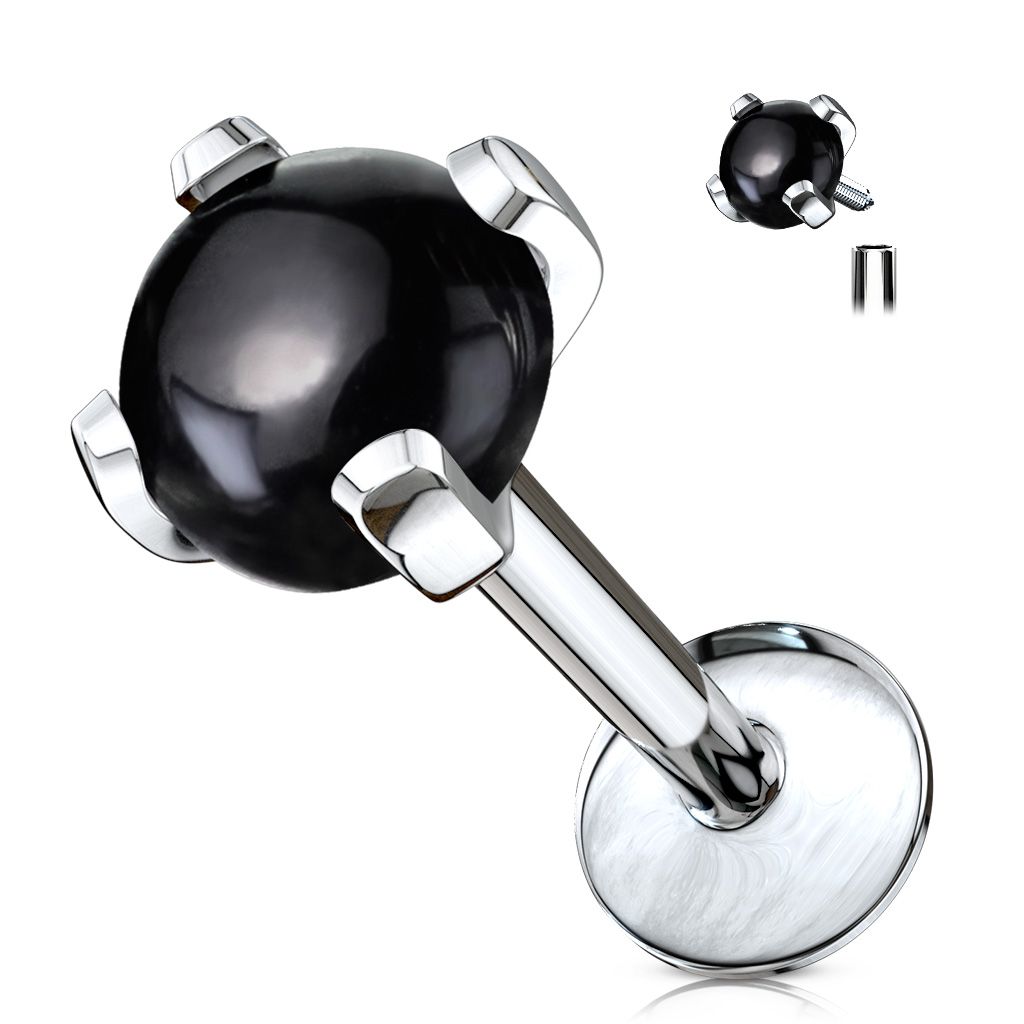 Piercing Labret Pierre Semi Precieuse Agate Noire