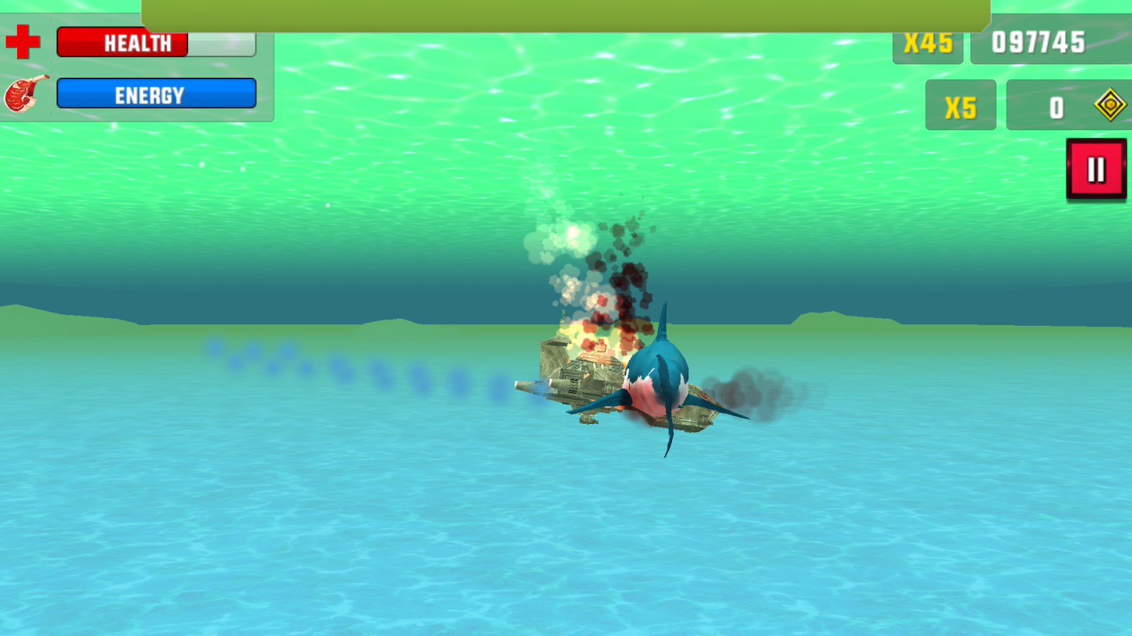 Dive into a beautiful 3D aquatic adventure!. Game Description Have you ever wondered what the life of a shark is like Now you can live it Swim around the ocean and hunt for your prey Balance other aspects such as health air and hunger Avoid the jellyfish bombs and fishing nets Features Hunt other marine animals including fish octopus starfish crabs and more Collect powerups for health booster and energy Fun elements attack boats ships divers and more Avoid the jelly fish bombs and fishing nets. Shark Attack has fighting missions to hunt innocent swimming divers actually like other animal attack games Completely new experience when you are on the edge of life and death!.