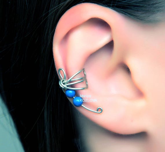 No Piercing Upper Ear Cuff Blue Petrol Pearls Etsy