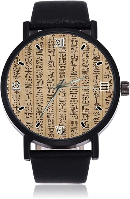 Egypt Hieroglyphes Montre Bracelet A Quartz Pour Homme En Acier Inoxydable Bracelet En Cuir Amazon Fr Montres