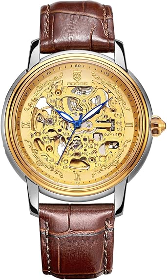 Rocos Montre Automatique Homme Mouvement Creux Montre Bracelet Cuir R0142 Bracelet Brun Amazon Fr Montres