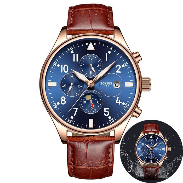 Benyar Cool A Quartz Pour Homme Chronographe Etanche Montres Sport Militaire Bracelet Cuir Marron Montre Bracelet Rakuten