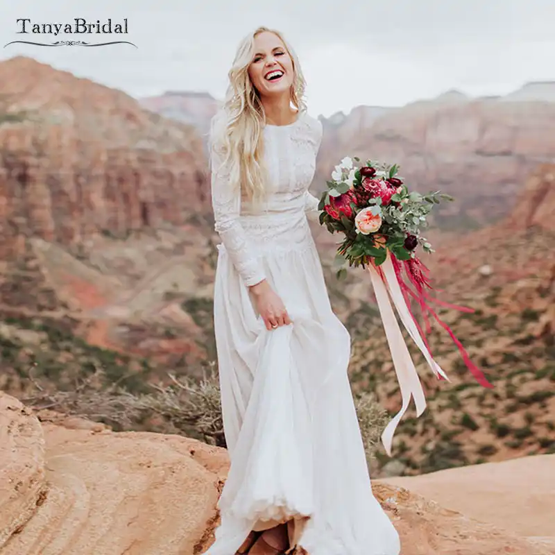 Long Sleeve Lace Chiffon Wedding Dresses Bohemian Vintage Bridal Gowns Romantic Love Robe De Soiree Dw055 Wedding Dresses Aliexpress