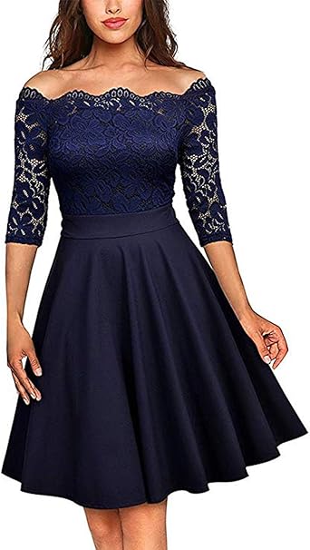 Sunnyme Femme Robe Vintage Robe Epaules Denudees Chic Soiree Sexy Robe Trapeze Marine Amazon Fr Vetements Et Accessoires