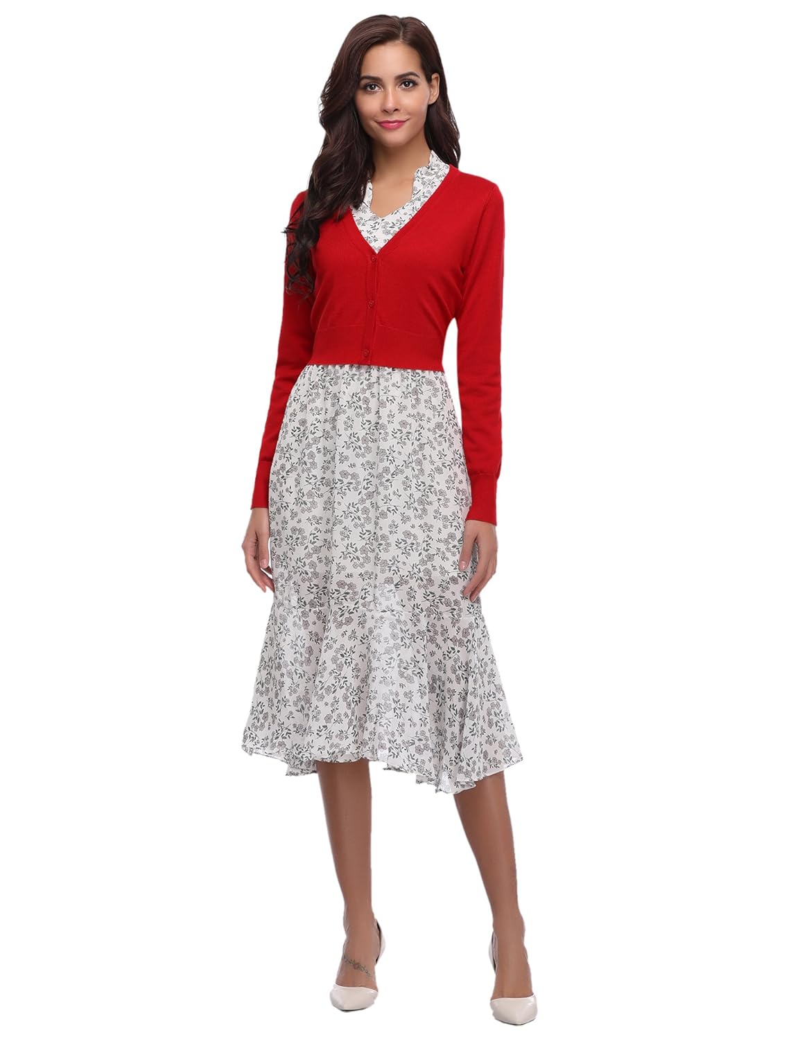Grace Karin Bolero Femme Col V Manches Longue Cardigan Tricote Gilet Court Chic Boutons Caches Pour Robe Soiree Vintage Femme Boleros