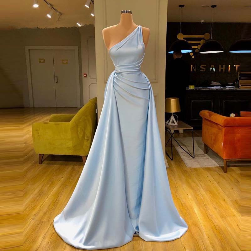 New Light Blue Evening Dresses One Shoulder Ruched Satin Overskirt Party Woman Dress Robe De Soiree Vintage Evening Dress Vintage Evening Dresses Uk From Penomise 111 26 Dhgate Com