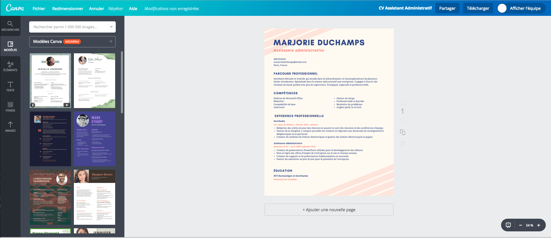 Modèles de CV Trouver le modèle de CV parfait Exemples de CV S'aider d'exemples de CV pour tout type d'emploi Comment faire un CV Apprendre à faire un bon CV simple et efficace Compétences sur un CV Mettre en avant ses meilleurs atouts sur son CV Conseils CV Adapter son CV à chaque situation avec nos conseils d'experts Créer un CV en.