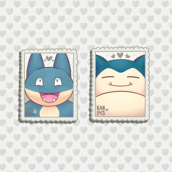 Cute Munchlax Snorlax Shiny Pokemon Stamp Sticker Gray Normal Etsy