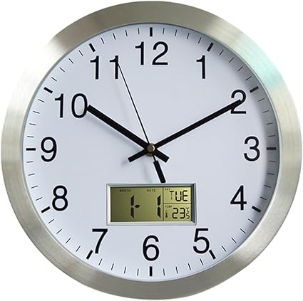 Lommer 30cm Radio Pilotee Horloge Murale Metal Pendule Murales Moderne Avec Thermometre Et Date Pour Cuisine Salon Chambre Bureau Amazon Fr Cuisine Maison