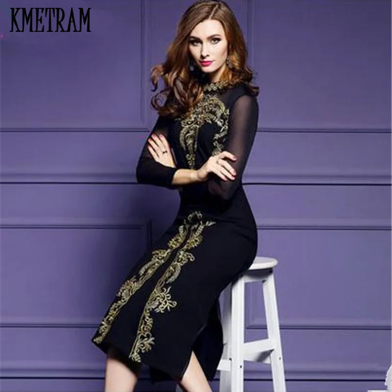 Noir Broderie Robe Moulante A Manches Longues Italie Sexy Robes De Soiree Elegant Ukraine Vestido Grande Taille Vestidos Mujer Yjz118 Aliexpress