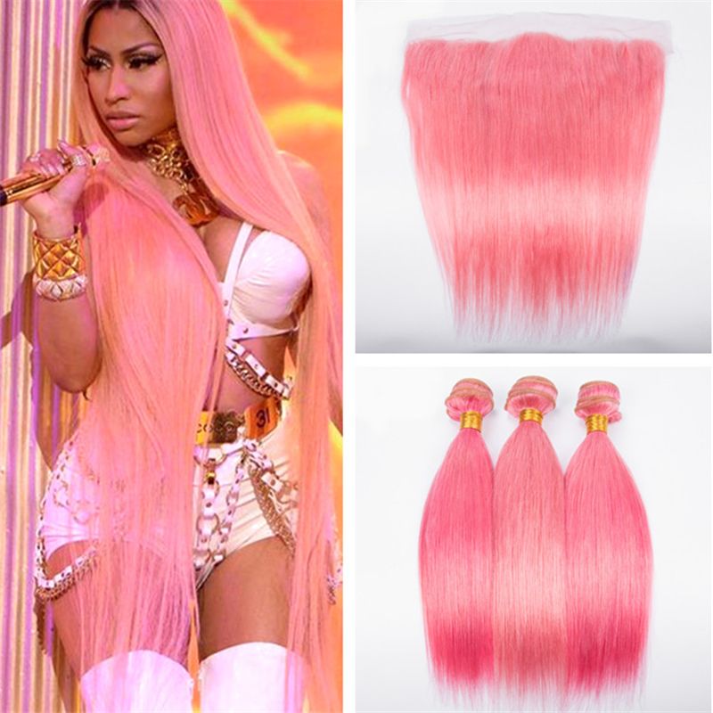 Acheter Paquets De Cheveux Humains Rose Clair Avec Fermeture Frontale En Dentelle Extensions De Tissage De Cheveux Vierges Peruviens Vierges Roses Et Roses Avec Face De 148 32 Du Dh Hair1 Dhgate Com