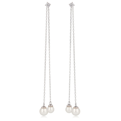 Boucles D Oreille Pendantes Argent Rhodie Double Boules Blanches Femme Autres Maty