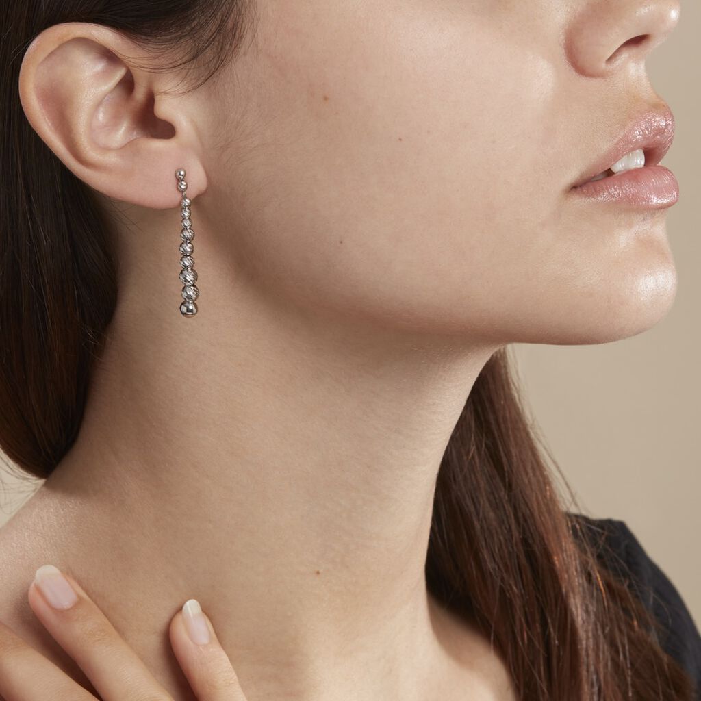 Boucles D Oreilles Pendantes Chaines Boules Or Blanc 9k Ocarat
