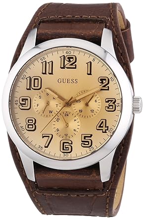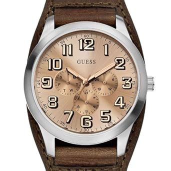 Guess U950g2 Analogique Montre Homme Bracelet En Cuir Marron Large Amazon Fr Montres