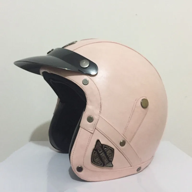 Nouveaute Casque Moto Rcycle Femme Retro Pu Cuir Ouvert Casque Vintage Scooter Casque Rose Moto Casco Avec Lunettes Gratuites Aliexpress