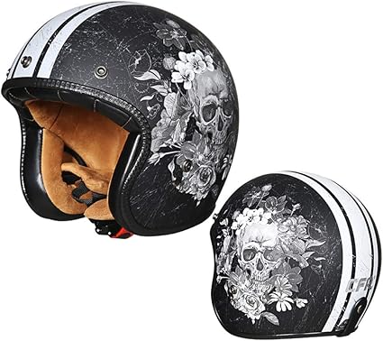 Ygfs Casque De Moto Vintage Harley Dote D Un Casque De Securite 3 4 Type Ouvert Pour Homme Et Femme Adultes Black Skull Rose Rose Amazon Fr Cuisine Maison