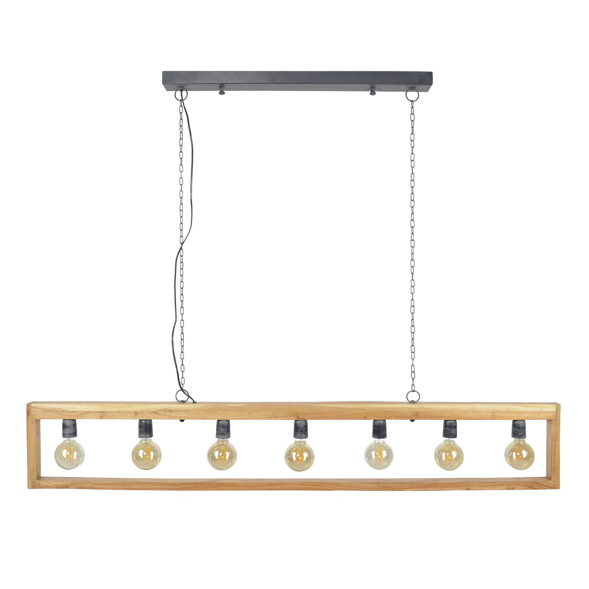 Suspension Contemporaine Cadre Bois D Acacia 7 Lampes Lucknow Suspensions Lustres Pier Import
