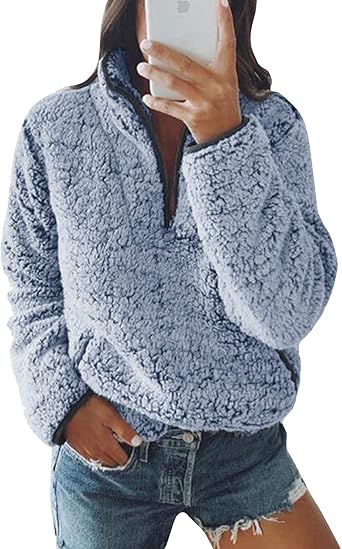 Yidarton Pull Femme Hiver Polaire Sweatshirt Sweat Laine Zip Manches Longues Col Montant Pulls Haut Tops Poches Amazon Fr Vetements Et Accessoires