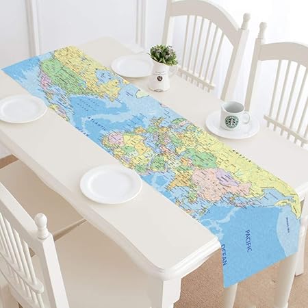 Zemivs Chemin De Table Moderne Ancienne Couleur Carte Du Monde Motif Couloir Chemin De Table Chemin De Table Ferme 16 X 72 Pouces Pour Les Diners Evenements Decor Amazon Fr Cuisine Maison
