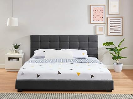 Homifab Lit Adulte Avec Tete De Lit Capitonnee En Tissu Gris Fonce Sommier A Lattes 180x0 Collection William Amazon Fr Cuisine Maison