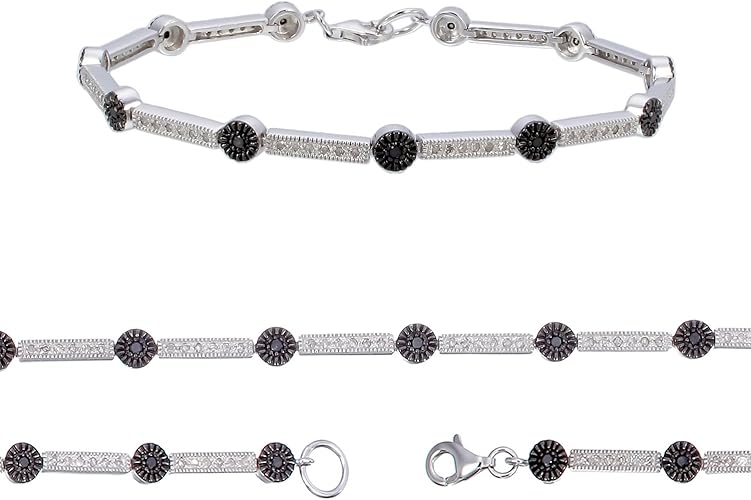 Vir Jewels Bracelet Femme Argent Fin 925 1000 Diamant Noir 0 55 Karat Amazon Fr Bijoux