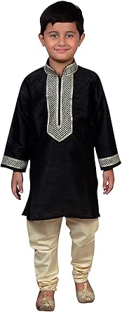 Amazon Com Boys Indian Black Silk Kurta With Off White Pyjama Sherwani Salwar Kameez Uk 6 Clothing