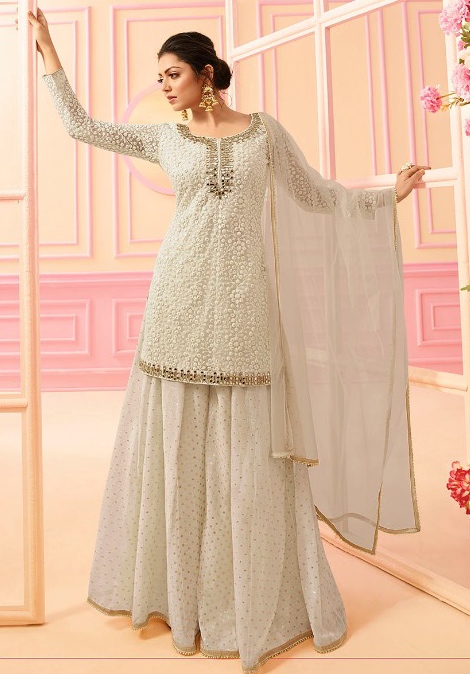 White Net Sharara Suit Salwar Kameez Designer Collection