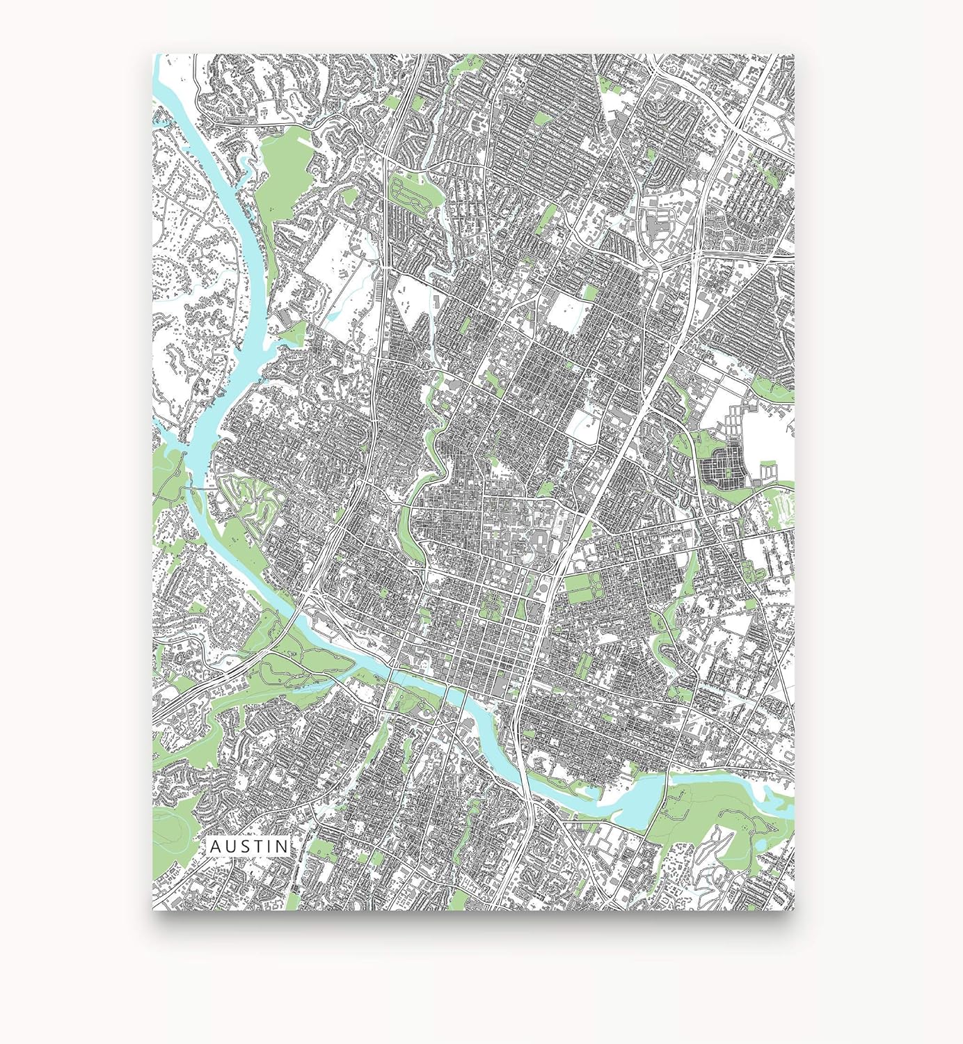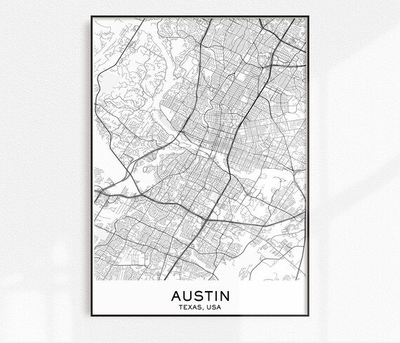 Austin Map Print City Map Prints Austin Map City Maps Etsy