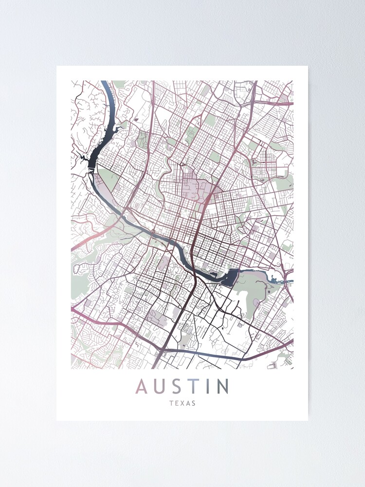 Austin City Map Usa Texas Poster By Theredfinch Redbubble