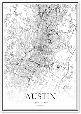Amazon Com Usa Tx Austin Black White Minimalist Art 28 City Map Painting Poster Home Decor Gift Posters Prints