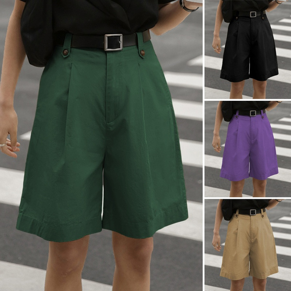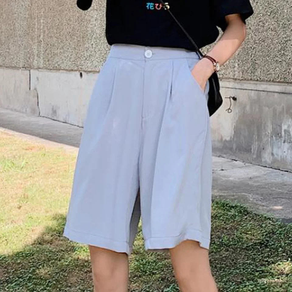 Womens High Waist Bermuda Shorts Korean Streetwear Half Knee Length Shorts Femme Harajuku School Girl Wide Leg Loose Long Shorts Shorts Aliexpress