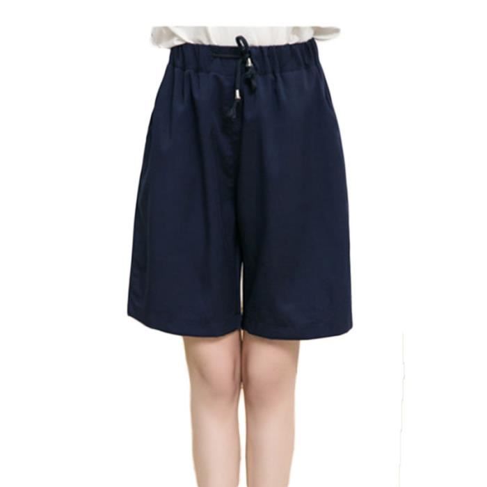 Bermuda Femme Large Lache Taille Haute Elastiquee Couleur Unie Elasticite Bleu Fonce Achat Vente Bermuda Cdiscount