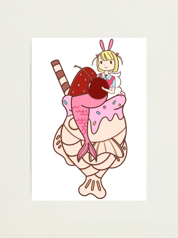 Cute Bunny Anime Girl With Taiyaki Photographic Print By Limedapples Redbubble