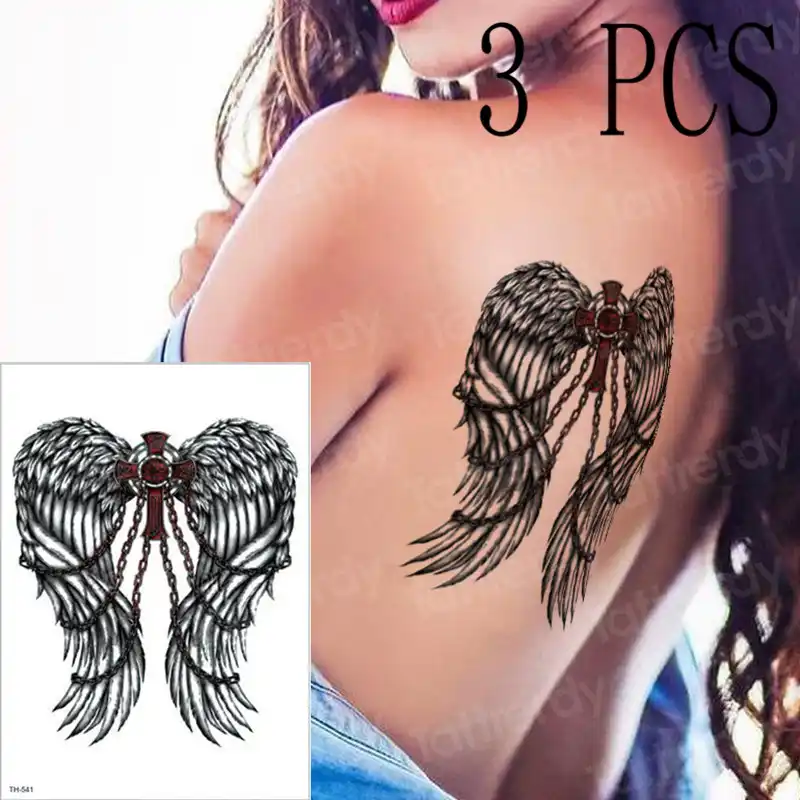 3 Pieces Lot Ailes D Ange Manilles Croix Mandala Autocollant De Tatouage Impermeable Sous Le Bras De Poitrine Dos Tatouage Battement De Coeur Tatouage Et Art Corporel Aliexpress