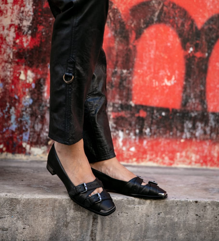 Ballerines De Service Pour Femme En Cuir Noir Swedi Nara