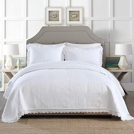 Unimall Dessus De Lit Matelasse Couvre Lit Blanc Pur Couverture Coton Courtepointe Imprime Broderie 3 Pieces Style8 Amazon Fr Cuisine Maison