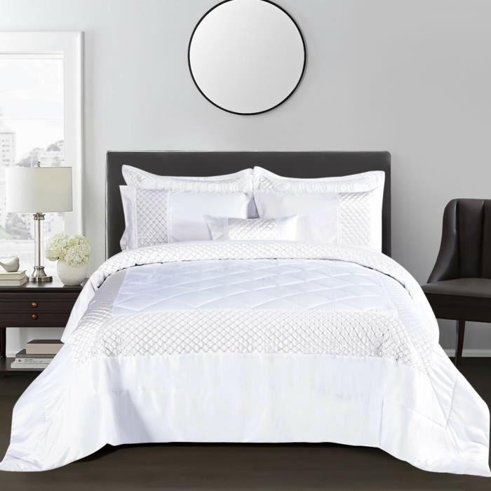 Couvre Lit 250cm X 260cm Blanc Avec 2 Taies Doreiller Cuisine Maison Ameublement Et Decoration