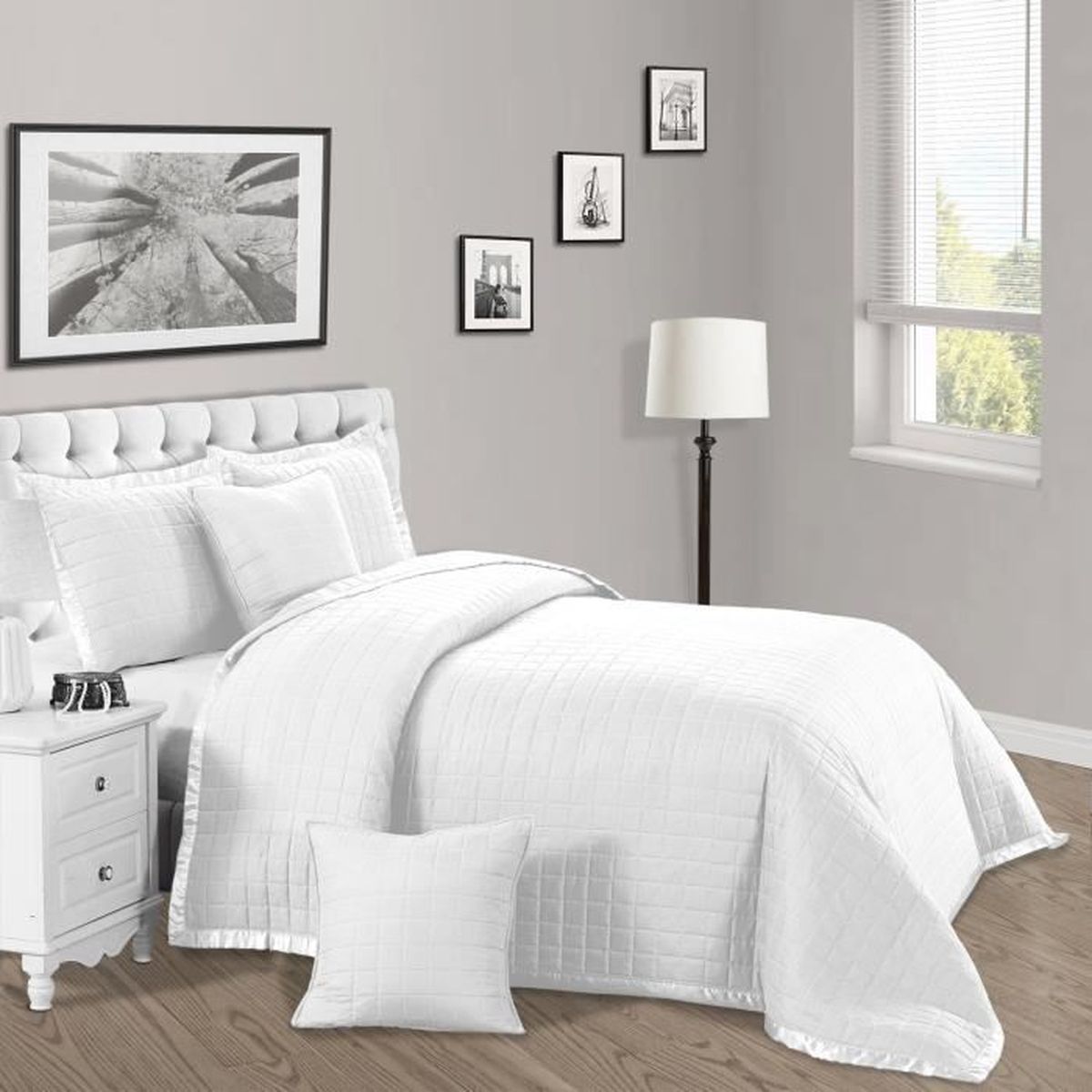 Couvre Lit Boutis Perigord 230x250cm 2 Taies 60x60cm Blanc