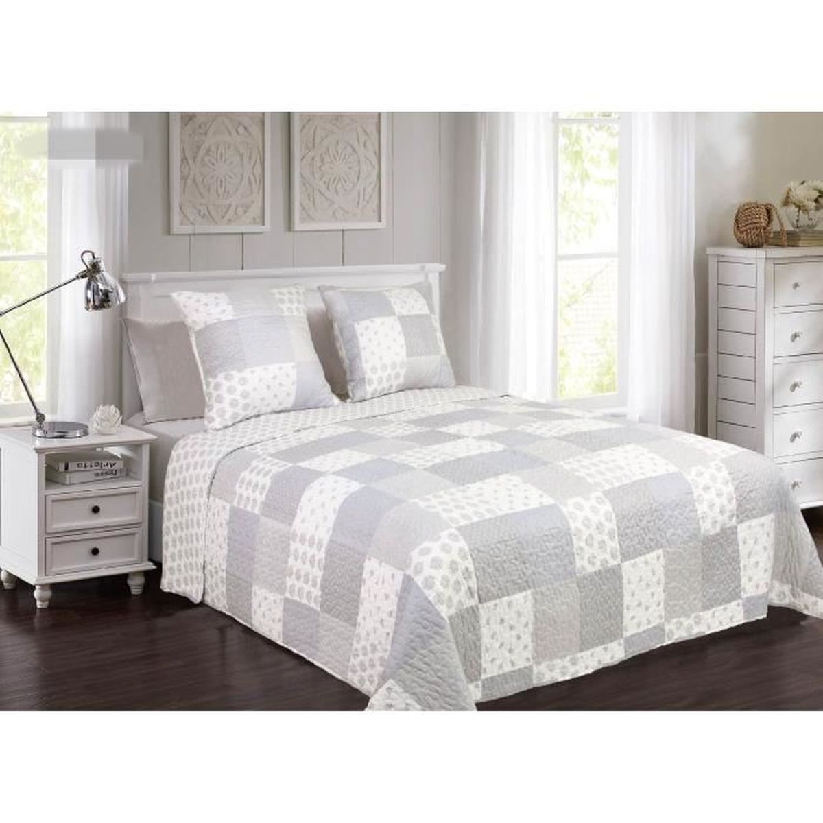 Couvre Lit Boutis Brode Bicolore Gris Et Blanc Pour Lit 2 Personnes Livraison Gratuite