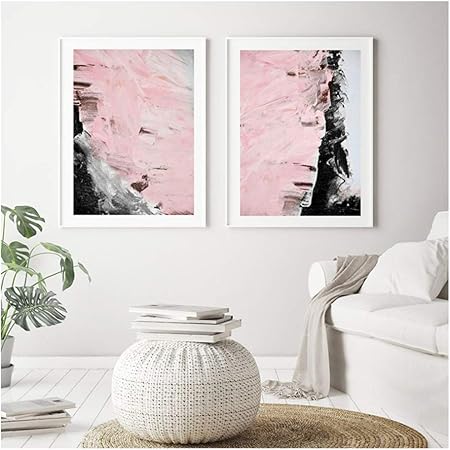Hsffbhfbh Toile Peinture Blush Rose Abstrait Affiches Et Impressions Moderne Tendance Peinture Pour Salon Decor Mur Art Photos 60x80 Cm 23 6x31 5 Pouces X2 Sans Cadre Amazon Fr Cuisine Maison