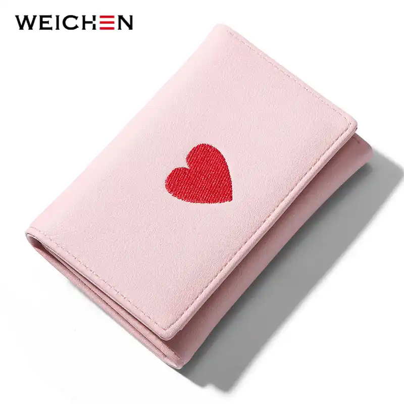 Weichen Portefeuille Avec Cœur Brode Pour Femmes Petit Portefeuille De Marque En Cuir Pu Pliable A La Mode Aliexpress