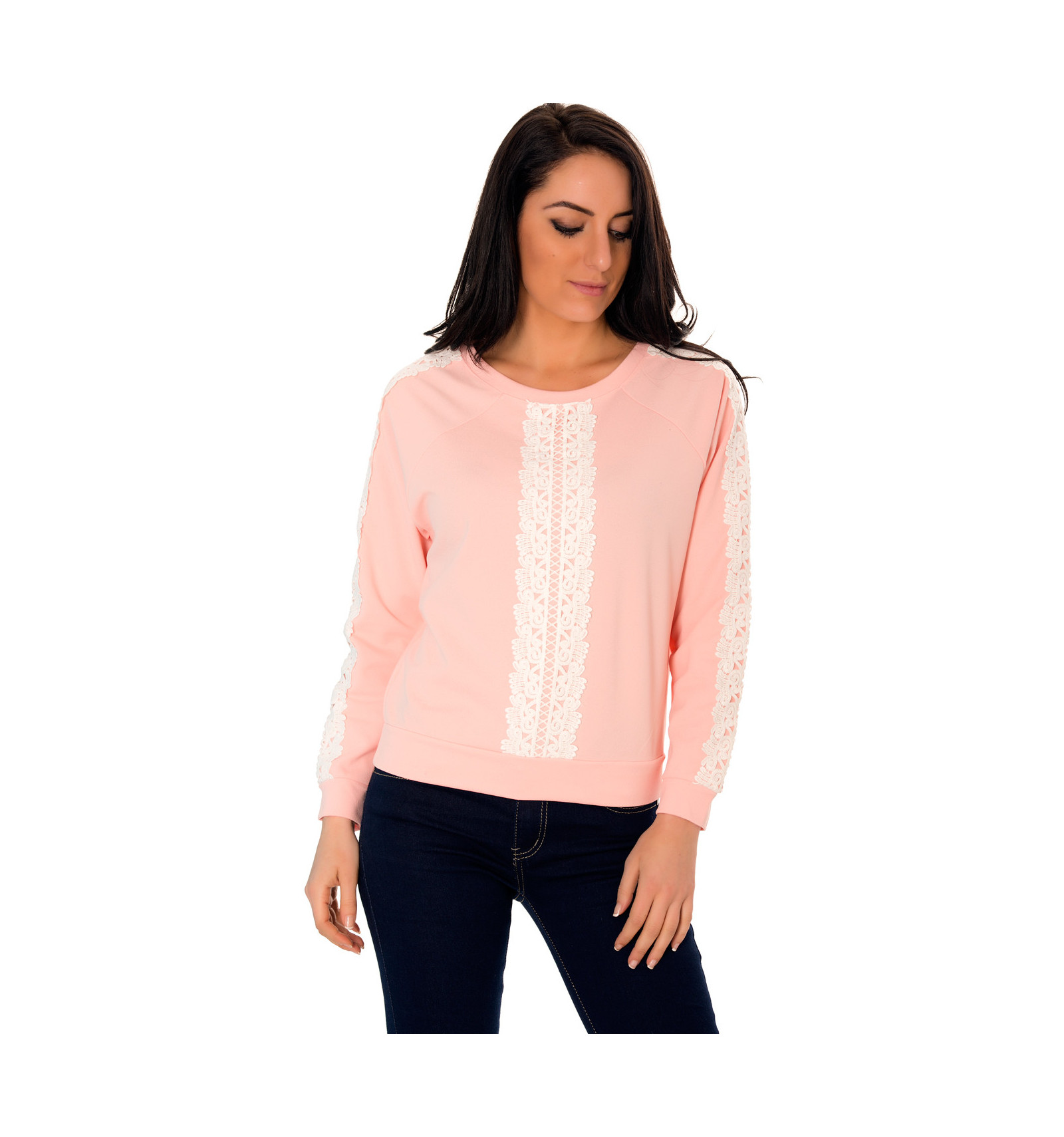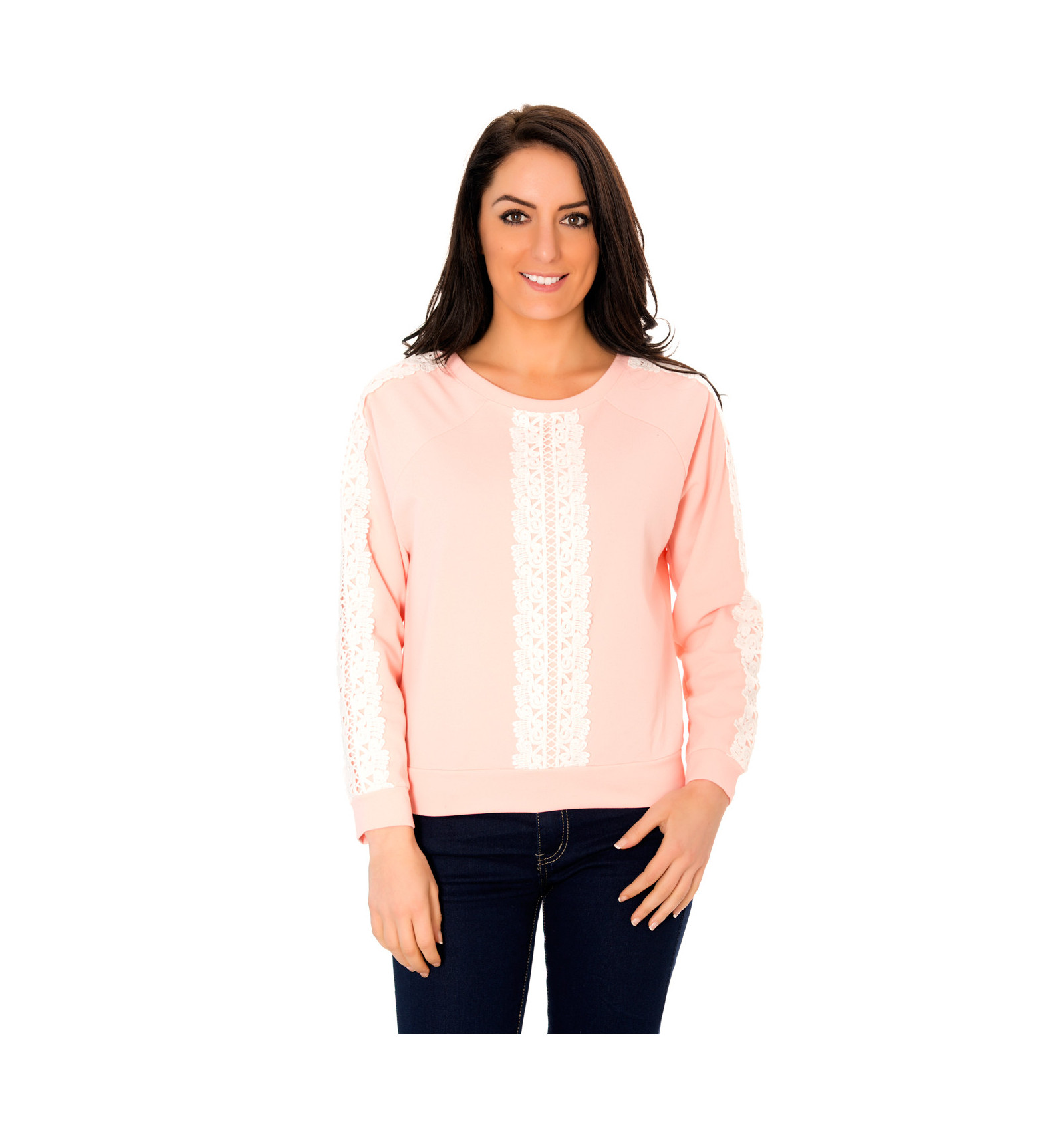 Petit Pull Col Rond Rose Manches Longues Avec Details Brodes Blancs Petit Pull Femme Mode
