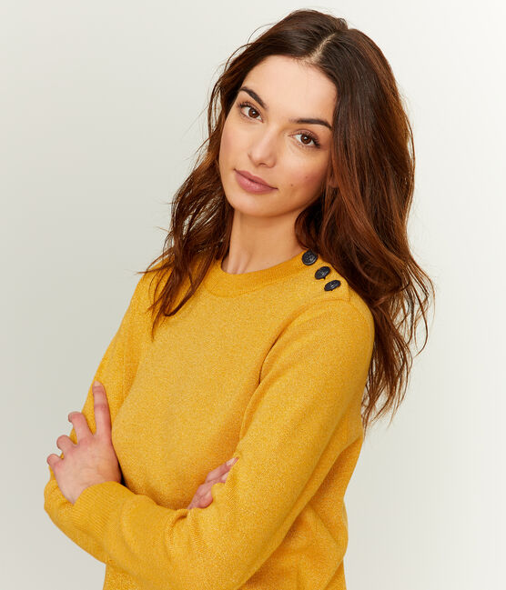 Pull Femme Col Rond Et Ras De Cou Priscillia Couleur Moutarde