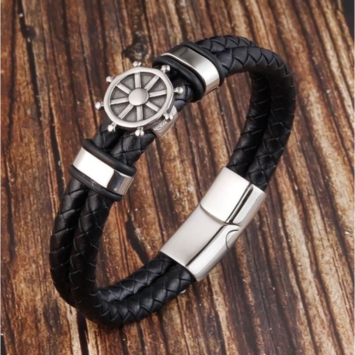 Bracelet En Cuir Pour Homme De Gouvernail De Bateau Chaud Bracelet En Cuir De Corde En Cuir Tisse De Mode Noir Achat Vente Bracelet Gourmette Bracelet En Cuir Pour Homme