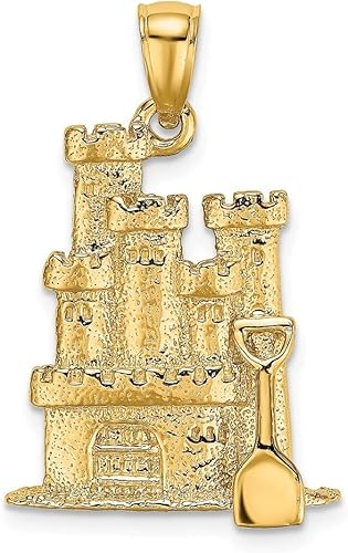 Collier Avec Pendentif En Or 14 Carats Avec Pelle En Forme De Chateau De Sable 3 D Sur Le Cote Suivant Texture Amazon Fr Bijoux