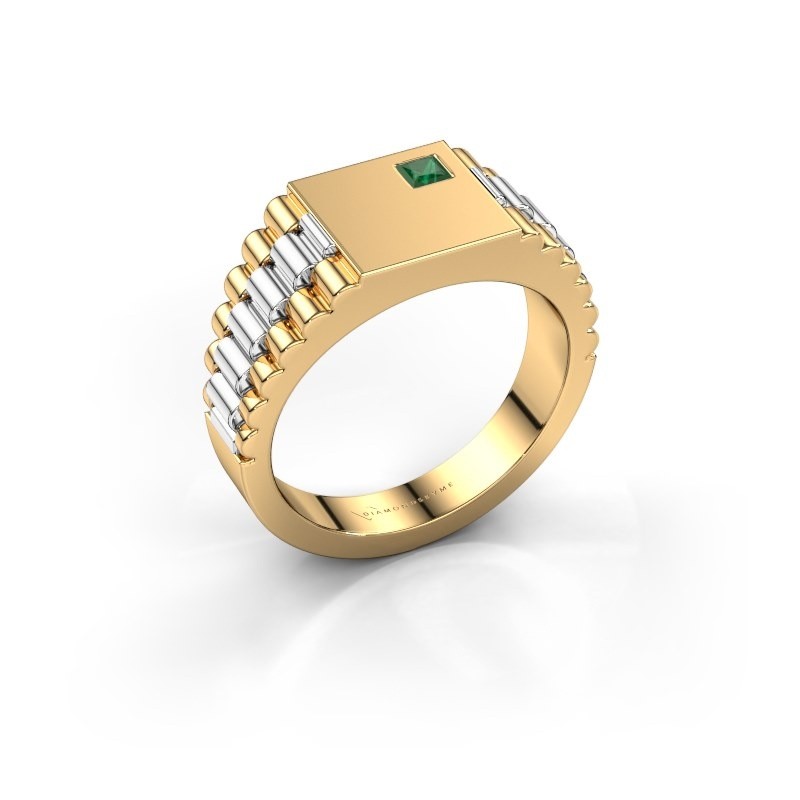 Massives Bague Style Rolex Pelle En Or Jaune Royal Et Emeraude